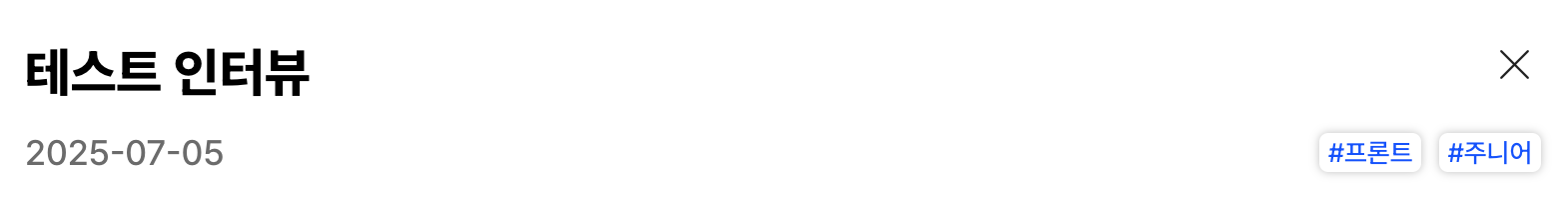 한눈에 보기에도 단순한 레이아웃이다. 인터뷰 제목과 날짜가 표시되고, 오른쪽에는 태그와 닫기 버튼이 있다. 이 정도 구성이라면 직관적으로 "서버 컴포넌트로 만들어 재사용하면 되겠다"는 판단이 든다. 실제로도, 인터뷰 정보를 서버에서 받아오고 이를 렌더링하는 컴포넌트는 서버 컴포넌트로 구성하는 게 자연스럽다. 그러나 문제는 오른쪽 위의 X 버튼에서 시작된다.