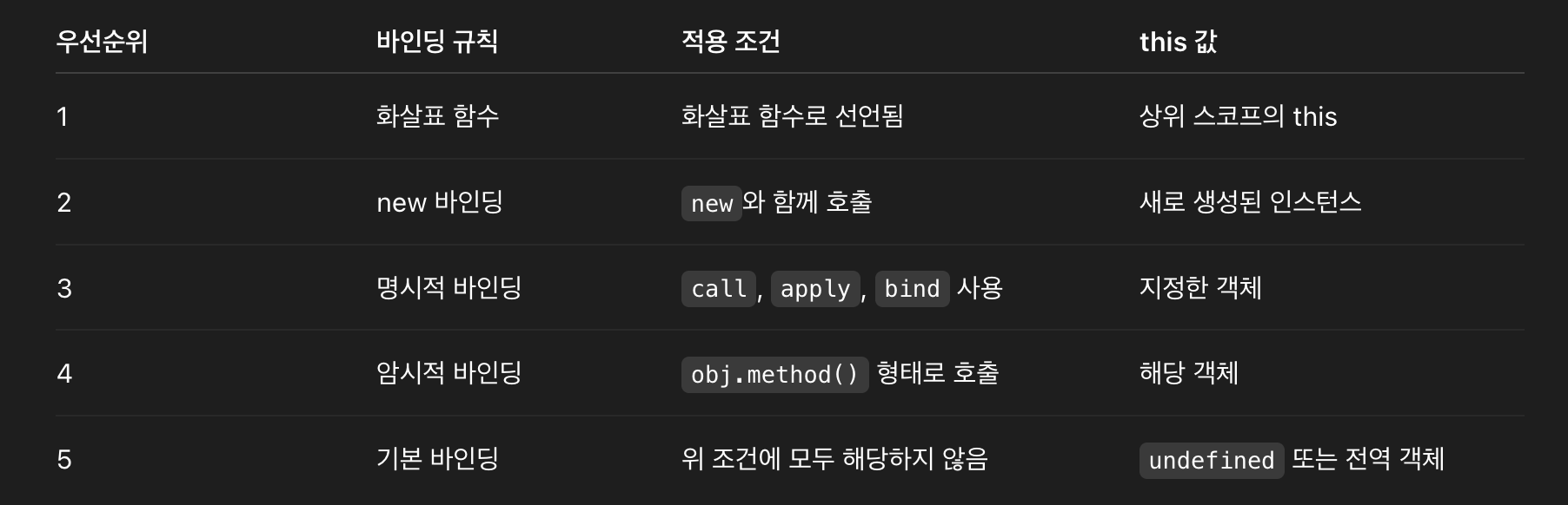 중요한 점은 bind로 고정된 this조차 new 앞에서는 무시된다는 것이다. 즉, new 바인딩은 가장 강력한 규칙 중 하나다.